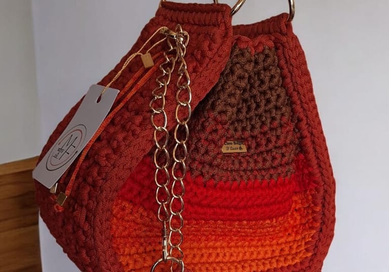 Bolsas de crochê feitas à mão, únicas e duráveis.